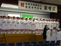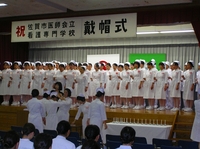 戴帽式を終え、改めて准看護師になるために、日々勉強を怠らないようにしなければならないと感じました。今まで多くの人達に支えられながら、今日の日を迎えることができたかと思うと感謝の気持ちで一杯です。それと同時に支えてくださった方たちの気持ちに応えるためにも、今までの自分の勉学に取り組む姿勢を振り返り、今日を再出発の日として、さらに勉学に励み、実習においては、患者さんのことを考えた援助を精一杯行って生きたいと思います。これからの学校生活や実習でもお互いに助け合いながら、准看護師を目指します。