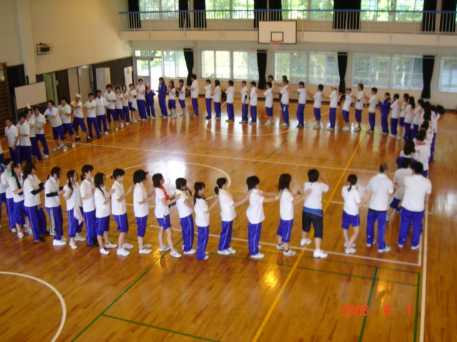 高等課程2年生81名は国立阿蘇青少年交流の家において 「1.協調性を養う、2.自分の行動に責任を持つ、3.人間関係づくりの基盤を養う」 ことを目標に、平成20年7月31日(木)?8月2日(土)までの2泊3日の研修を行いました。 ケーススタディ発表会も終わり、自分の行動を振り返ることや協力することの大切さ感じている時期でもあり、今後人間関係を築いていくためにもう一度自己を見つめてほしいとの思いから、昨年に引き続き 体育の講師である土井由紀子先生に「人間関係作り」の研修をお願いしました。 天候に恵まれ、研修を通して生徒の成長を見ることができました。以下は生徒の感想です。