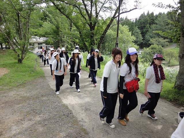 「協調性を養う、自分の行動に責任を持つ、人間関係づくりの基礎を養う」という三つの目的で行きました。初めは他のクラスの人とどのように関わっていけばいいか不安でした。しかし、一緒にフリスビーを作ったり、グループで話し合ったり、水基巡りをする中で、協力しあう姿や笑顔がみられお互いを思いやる心がみえてきて自然と心を一つにすることができました。自分にはない他のグループの良い所を学び、あっという間の二日間でした。