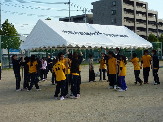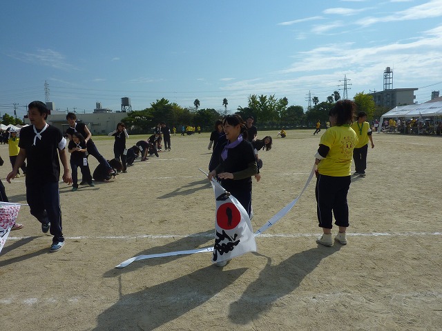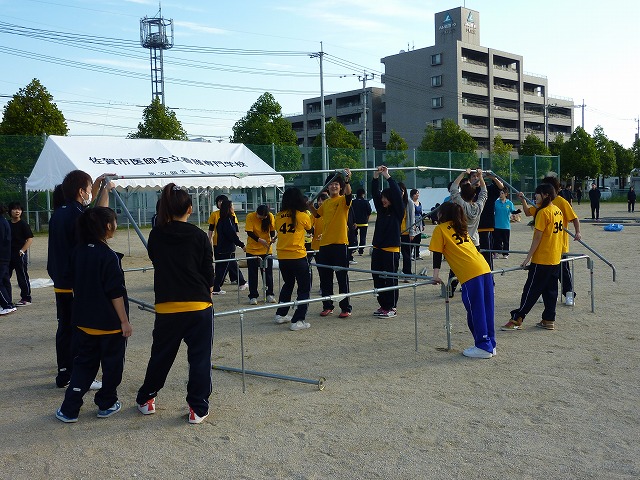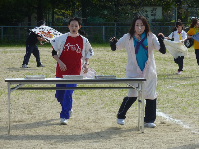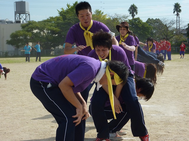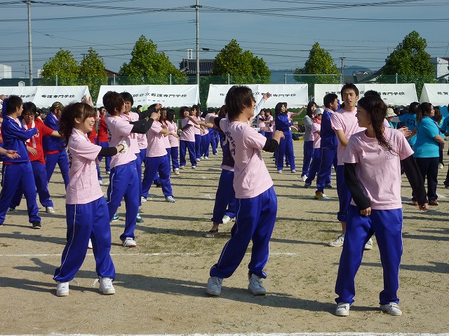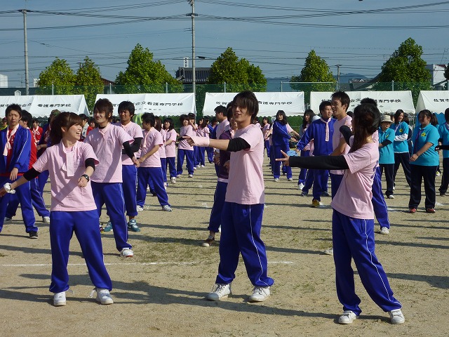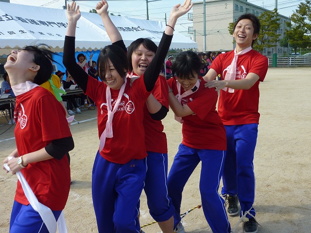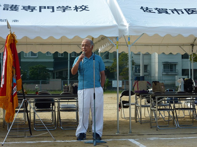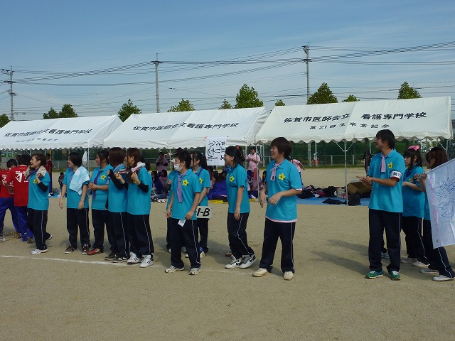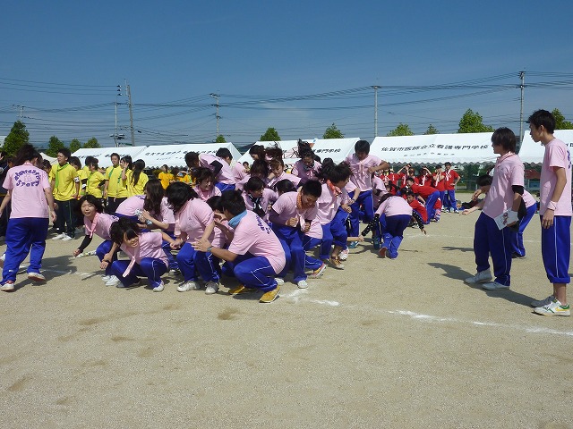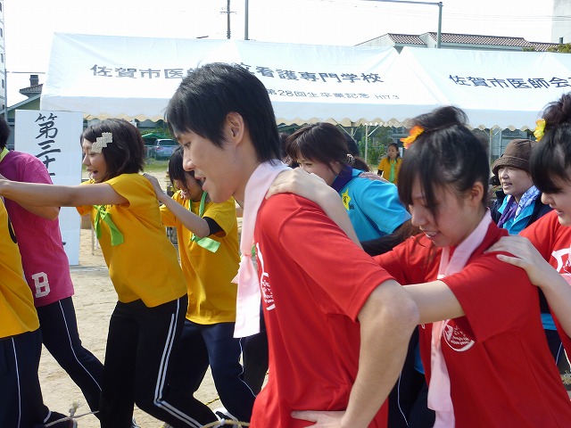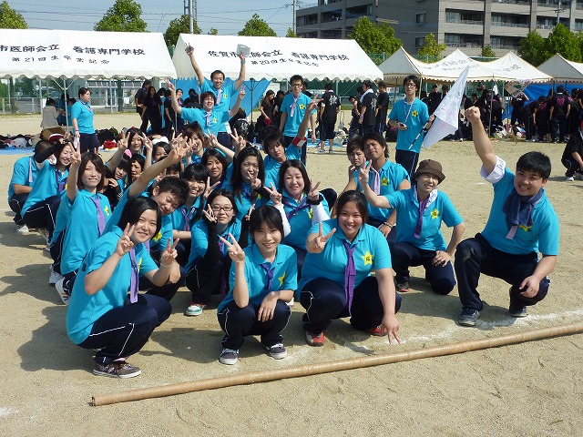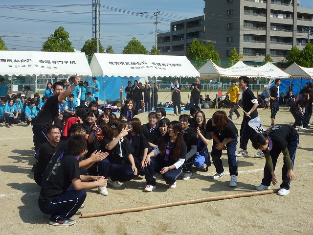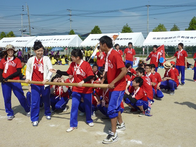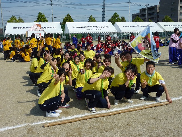 第37回学校祭(体育祭)が「被災地と共にがんはれ佐医看」獅子奮迅をテーマに9月25日(日)西神野運動広場で開催されました。早朝6時30分より学生会(大島伸也会長)を中心にライン引き、テント設営など準備が進みました。さわやかな秋晴れの下、全10競技に学生、教職員総勢500名が参加し、クラス対抗リレーでは激しいバトルあり、パフォーマンスでは素晴らしい団結力を各クラスが見せ、楽しい1日を過ごしました。総合優勝は3年Aクラスがみごと"3連覇"を達成しました。来年もまた新たな感動を期待しています!!