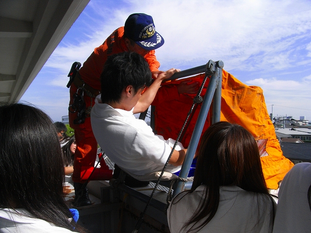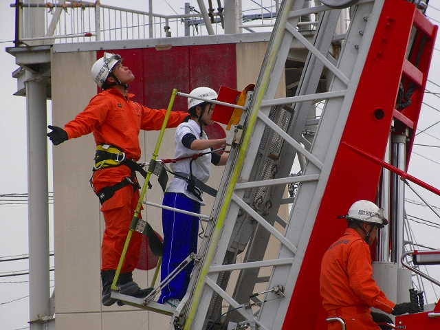 防災訓練は職場・学校などで行われているが、何度行っても「本当の時はどうなるだろうか」と不安になる。消火器の使用方法、消し方も一つ一つの手順、ホースの持ち方、風向きなどを考えなければならないことを学んだ。3階からスロープで避難するのを初めて見た。何よりも大切なことは冷静に落ち着いて早く避難できるように皆で協力しなければならないと思った。