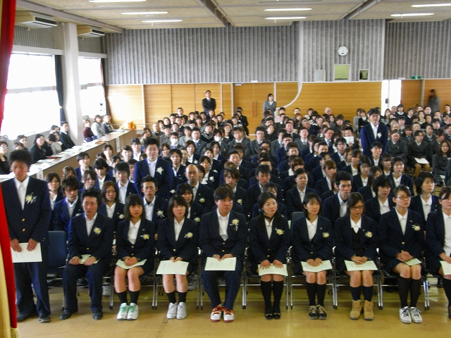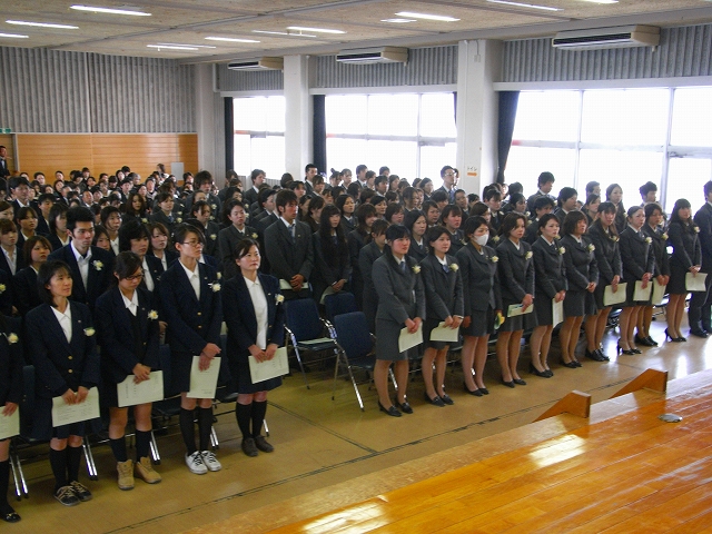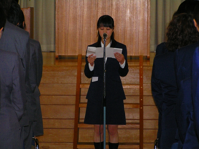 式は在校生代表の送辞,卒業生総代の答辞と続き,式歌を斉唱し閉式しました。
