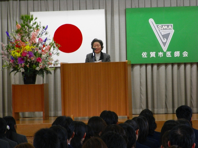 学校長の式辞の後,横尾金紹(佐賀中部保健福祉事務所長)様,古田ヒサ(佐賀県看護協会副会長)様.北島住江(専門課程同窓会会長)様より御祝辞を頂きました。貴重なお時間を割いて御臨席頂いた上に,卒業生に対し励ましとはなむけの言葉を頂戴し,大変有り難く御礼申し上げます。