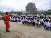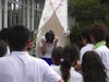 この訓練は「学生の日頃からの防火意識を高め、もし火災が発生した場合に冷静な対応が出来る心構えを養う」を目的に毎年行っています。当日は消火器の使い方、2階、3階ベランダから救助袋を使っての避難訓練、消防署員の方による講評、講話を実施しました。