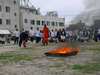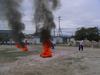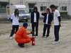 消火器の説明を受けた後、実際に消火器を使っての消火訓練を見学しました。私達は看護者として病院に勤めるため、実際に火災が発生したら何よりもまず患者さんを安全に避難させることが大事です。患者さんの状況は様々で歩ける方ばかりではないため、優先順位や避難方法など冷静に考えて行動しなければならないと思います。そのためにもこのような訓練に対して真剣に取り組むことの重要性を感じました。