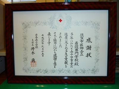 トップページ ブログ 平成22年度 日本赤十字社佐賀県支部長感謝状受賞