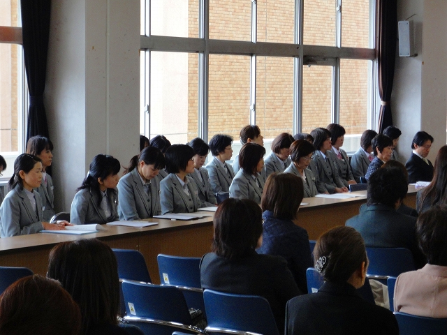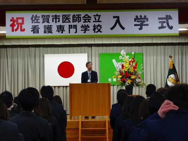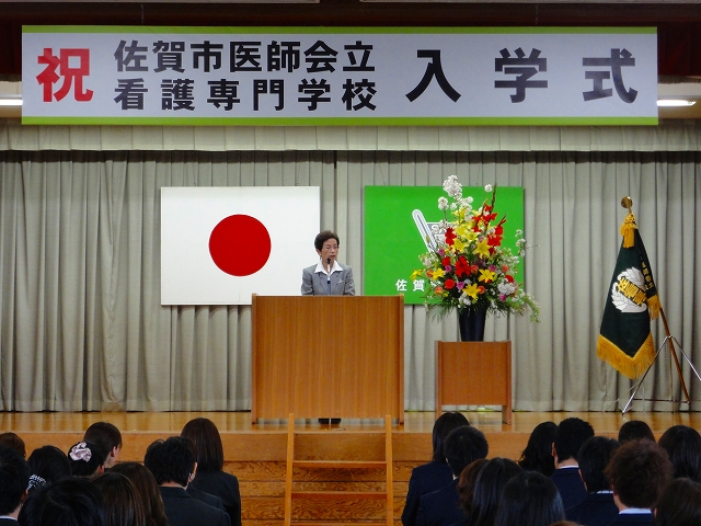 学校長の式辞の後、多数のご来賓の方々を代表して、三原博幸様(佐賀中部保健福祉事務所長)岡部洋子様(佐賀県看護協会副会長)よりご祝辞をいただきました。また、祝電も各位より多数頂きました。厚く御礼申し上げます。