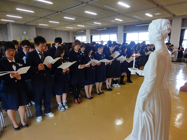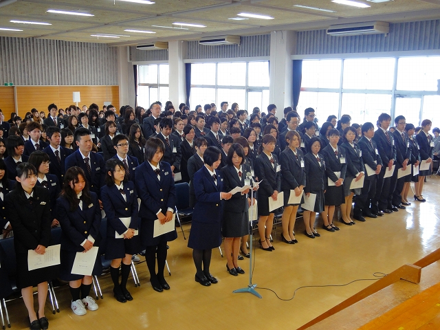 その後、新入生代表の宣誓、新入生全員によるナイチンゲール誓詞斉唱、校歌斉唱と続き、最後に記念撮影で入学式は終了しました。