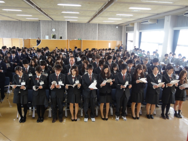 その後、新入生代表の宣誓、新入生全員によるナイチンゲール誓詞斉唱、校歌斉唱と続き、最後に記念撮影で入学式は終了しました。