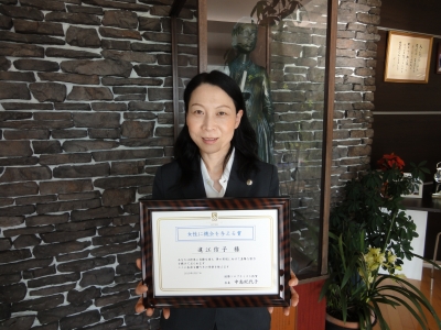 5月17日(金)、国際ソロプチミスト佐賀「第36回クラブ表彰式」に於いて、本校専門課程3年生、遠江信子さんが「女性に機会を与える賞(WOA)」を受賞しました。