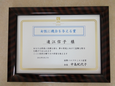 国際ソロプチミスト佐賀「女性に機会を与える賞」