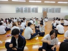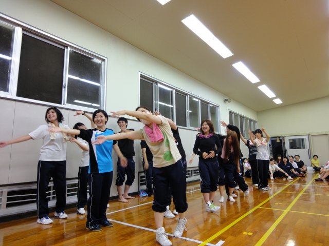 大雨と雷でブルーな気持ちの中始まった研修でした。時間がたつにつれ笑顔でお互いに笑っていました。皆で協力して色々な活動をしているうちに、「嫌」だった研修が「楽しい!!」に変わっていました。個人個人性格も考え方も違うので一つになるのは難しく感じましたが、相手の気持ちを考え行動することでよりよい人間関係を築けると学びました。