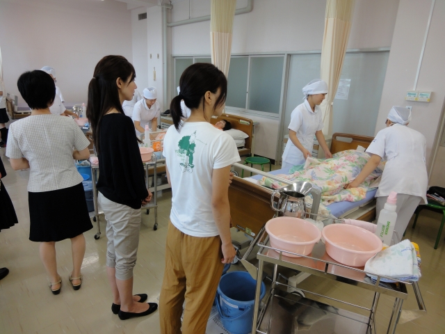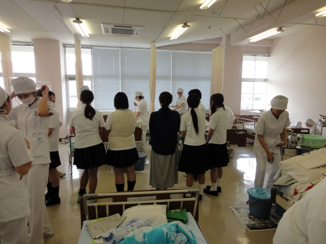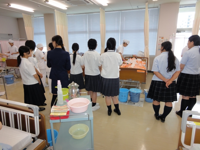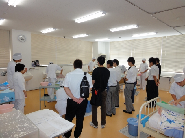 - 先輩方が実習をされているところを見学し、患者さんの気持ちを第一に考えて体を拭いたりされていることがよくわかった。一緒について説明をして下さった2年生の方がとても良くして下さって嬉しかったです。訪問看護の実習室などとても設備が整っていてすごいと思いました。