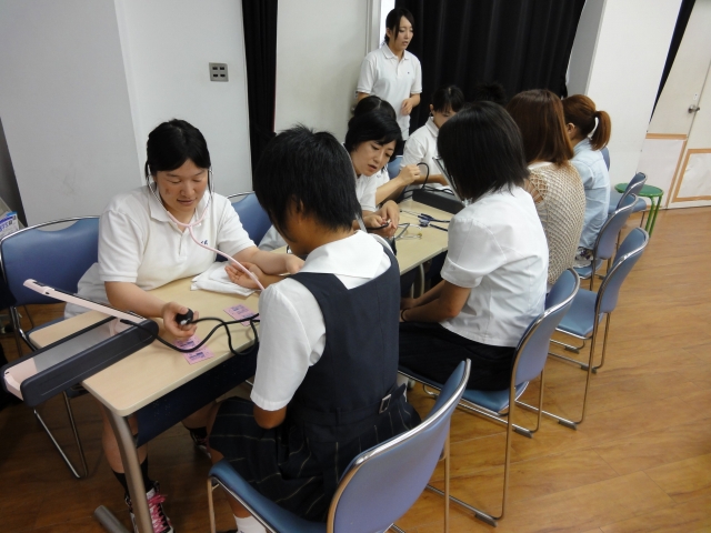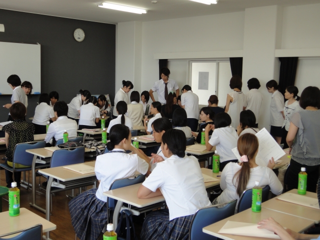 8月6日(火)から8日(木)の3日間にわたり高等課程(准看護科)の受験者対象のオープンスクールを開催しました。毎日35度を超える猛暑日が続く中、3日間で約100名以上の方々に参加して頂きました。ありがとうございました。当日は看護のビデオ観賞、在校生による学校生活や学校行事の話、実習室での1年生の看護技術の演習見学や血圧測定の体験を行いました。オープンスクールに参加された方、都合がつかず参加できなかった方、ぜひ「夢・実現」に向けて受験お待ちしております。以下、参加された方々の感想と当日の風景です。