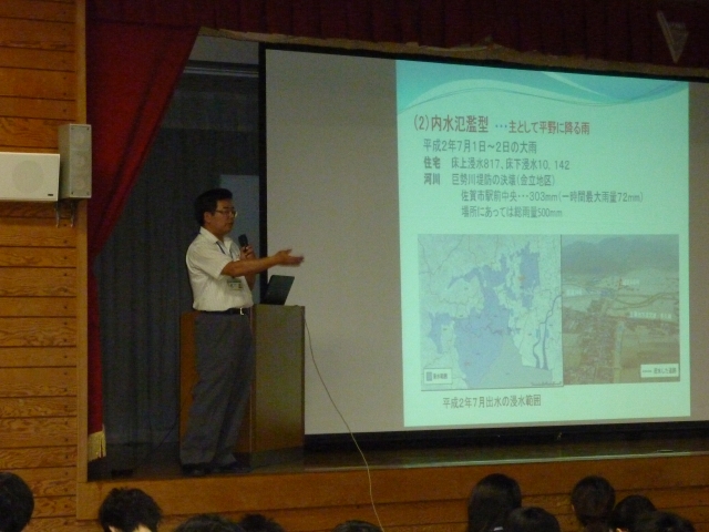 防災講話を受けて、佐賀で起こりうる災害の種類が地域で異なることを初めて知りました。今までは災害と聞いても他人事のように考えていた自分がいました。ですが、東日本大震災や、近年の異常気象によるゲリラ豪雨等により、災害時の対策を個人レベルで意識し、食料の備蓄や災害時の避難場所の確認をする必要があると感じました。それに加え、自分の家族とも話をし、防災の意識を高めていきたいと思っています。今回の防災講話で、平野部では60mm/h以上になると、町に水があふれてくると話されていました。今まで気象情報の中で1時間の雨量が何mm/hとニュースで言っているのを聞いてもいまいちピンとこずに、なんとなく聞いていて、イメージ出来ていなかったです。ですが、今後は雨量60mm/hを基準にし、気象情報を見ていくといいのだと思いました。このことから、情報があっても、それをどのように捉え解釈すればいいか分からないと、正しい判断が出来ない。災害時又はそれに備えるためには情報収集も必要ですが、その情報を受けてどう判断するか、判断するために必要な情報を持っておくことが大切だと思いました。また今回の講話で、どの程度の備えをしておくと大丈夫なのだろうかと思いました。講話でも非常備蓄品の内容を挙げてありましたが、それだけなのかと不安になってしまいました。実際にはまだ被災したことがなく、想像出来ないから余計に不安になってしまうのではないかと思います。それでも自分の家族が被災しても生きていけるような備えを家族と話し合い行っていこうと思いました。講話の中で避難場所での実際を話されていて、被災し、物資が少ない中で様々な工夫をしながら生活されていたと聞き、今私達の生活は便利になりすぎていますが、日々の生活の中で節約したり何か工夫し生活することも、万が一被災した際に生活者としての知恵を活かせたらいいなと思いました。また、私たち看護職者として、被災した時に看護を提供できるように、本校で学んだ事や、現場で働き経験を積んで皆さんの役に立てるようになりたいと思いました。最近、私の子どもの学校から“さがんメール”システム登録の案内がきていました。この“さがんメール”は減災を進めるためのものなんだと分かりました。“さがんメール”へ登録し、危険情報が直接自分の携帯電話へメールで届くと思うと、とてもありがたいなと思っています。これらのシステムを活用し、自分の身は自分で守れるような行動をとっていけるように努めようと思いました。今回の講話で改めて防災について考えるいい機会になりました。ありがとうございました。