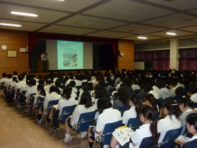 今日の講話を聞くまで佐賀での震災被害、津波の影響など深く考えたことがありませんでした。1792年に雲仙普賢岳の噴火及びその後の眉山の山体崩壊をそれに起因する津波被害にて島原対岸の肥後国に大きな被害を与えたことも知りませんでした。一番記憶に新しい震災被害は、東日本大震災での津波の被害ですが、自然はすごく素敵だけど、時には狂暴化し、恐ろしい物へと変わっていくこともあるのだと思いました。人の心を癒してくれるが、人の心までも奪っていく。多くの方が命を奪われ、多くの方が悲しみに包まれた。テレビを見て、「本当に大変そう、かわいそう」と思うだけで何の活動をできる訳ではなく申し訳ない気持ちでいっぱいでした。私達は何一つ不自由なく生活し、不便になった事がないので、先生のお話の中で医療の話(ナース服を切って陰洗をしたり)や、一人に対して一日当たりの食事の量が本当に少ない事など、改めて実態を考えさせられました。防災から減災へ。「防災」とは被害を出さない取り組みで、「減災」とは、あらかじめ被害の発生を想定した上でその被害を低減させていこうとするものだと納得させられました。①防災の基本知識を広める②危険情報を広く報せる③避難できる環境を作り上げるということを学び、そして災害がもし起こった時には一人の人間として、又、一人の看護師として役に立てられる様、今回の講話を胸に活動、実施していきたいと思います。