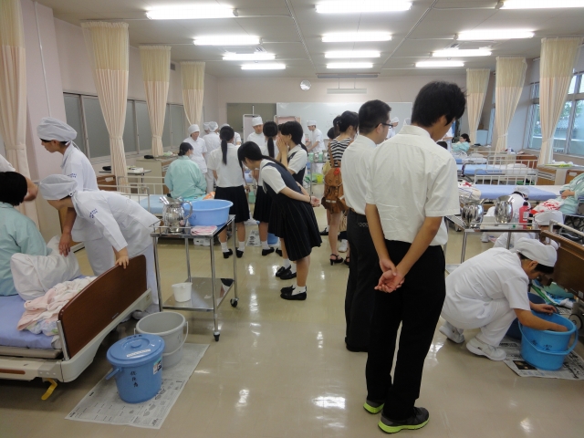 ●演習風景を見せて頂いた際、同じ班で協力して話をしながら笑顔で行われていて、いい光景だと思いました。先輩方の話を聞き、実習と勉強の両立は難しそうだけれど、1日1日しっかりと学習し、実習もこなしていくと、とてもやりがいを感じるものだと思いました。私もここで勉強したいと強く思ったし、看護師に必ずなりたい!!と思いました。今日はありがとうございました。