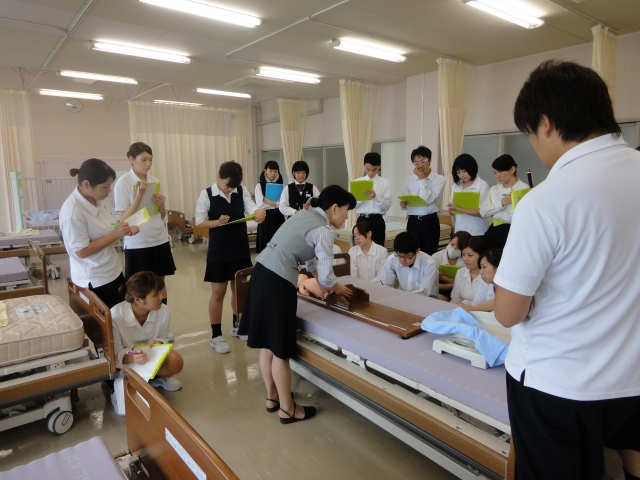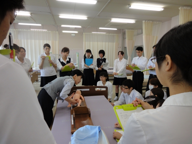 10月22日(水)佐賀商業高校2年生2名が、「看護の仕事に対しての理解を深め、進路選択およびその実現に向けての主体的な学習につなげる」という目的で高等課程1年生の授業に体験入学をされました。学校概要の説明、小児看護の授業への参加、小児の身体計測の演習見学のほか、在校生にも学校生活について話をしてもらいました。将来は看護師になりたいという思いがある生徒さんでしたので、熱心に取り組まれていました。 終了後は、「看護に対する興味が大きくなった、明るくて温かい雰囲気でよかった、覚えることがたくさんあり大変そうだったが授業の雰囲気はなごやかで分かりやすく、楽しいと思った」など、嬉しい感想を聞くことができ充実した時間になりました。将来の地域医療の担い手として、ぜひ看護の道を選んで頂きたいと思いました。