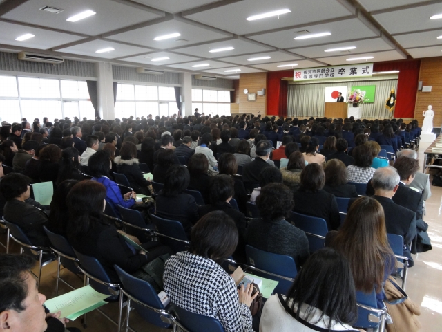 平成27年3月3日(火)、午後1時より本校3階講堂に於いて、来賓、講師、実習施設、勤務施設、保護者の方々の御臨席を賜り、看護専門学校の第38回卒業証書授与式が挙行されました。