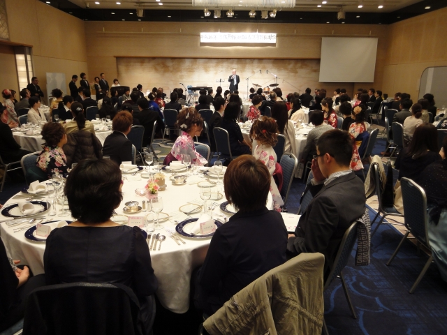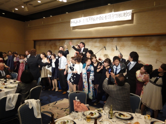 看護専門課程は6時30分よりホテルニューオータニ佐賀で「謝恩会」が開かれ、昼間とは違った皆艶やかな服装で、笑いあり、涙ありのとても心温まる謝恩会でした。