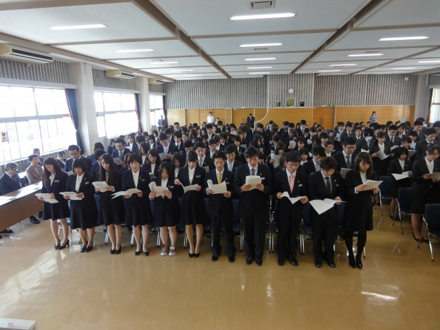 その後、新入生代表の宣誓、新入生全員によるナイチンゲール誓詞斉唱、校歌斉唱と続き、最後に記念撮影で入学式は終了しました。