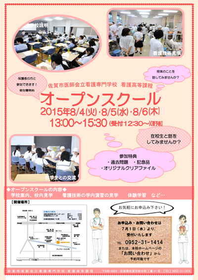 ●高等課程(准看護科)オープンスクール開催! 2015年8/4(火) ∼ 8/6(木) ●専門課程(看護科)オープンスクール開催! 2015年8/...