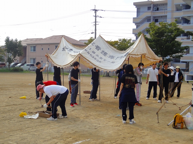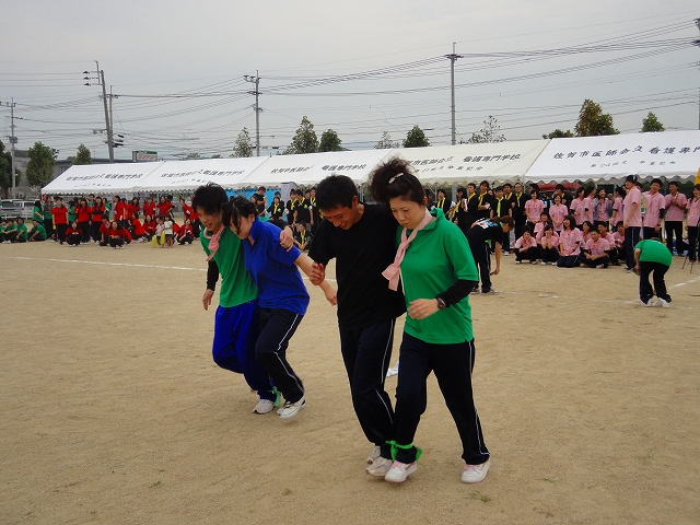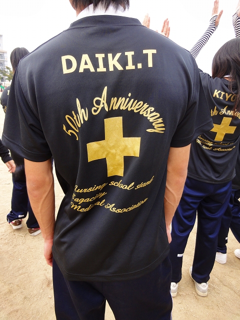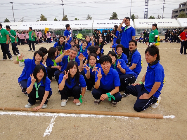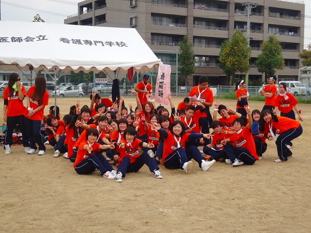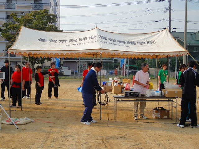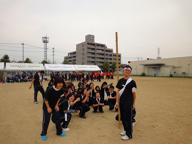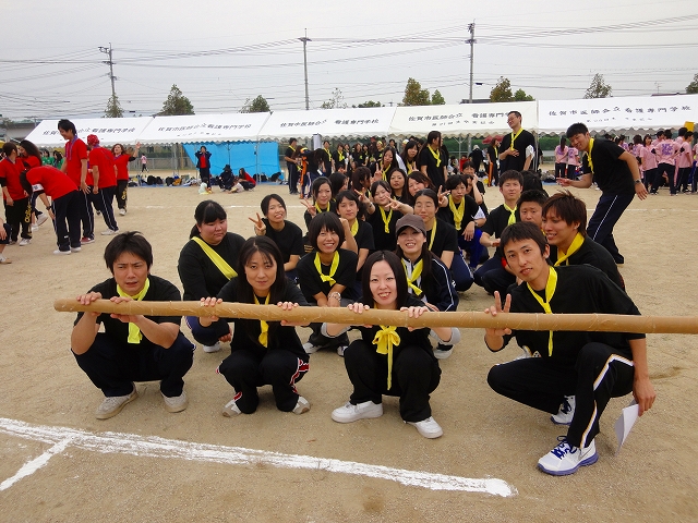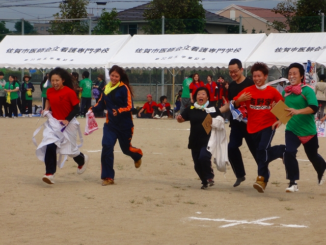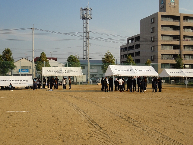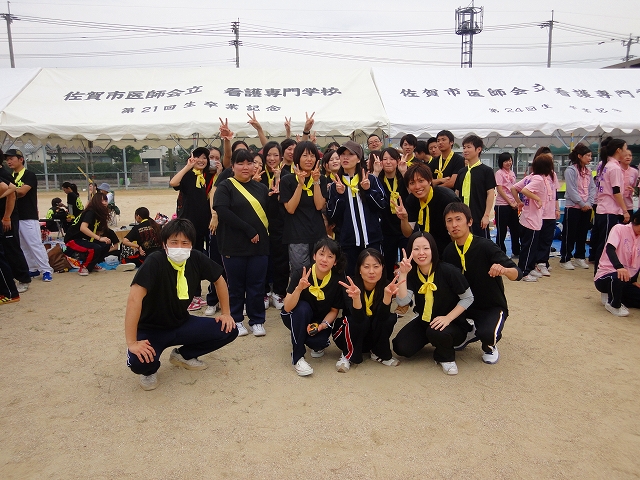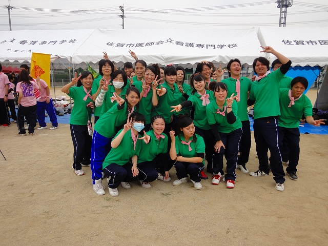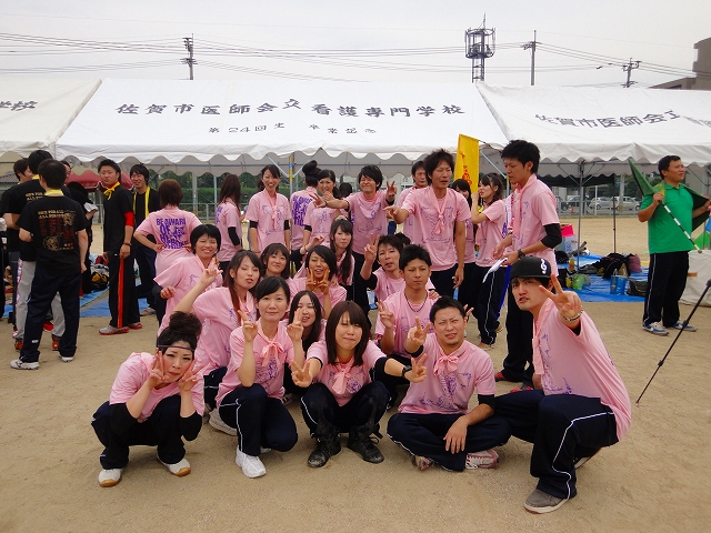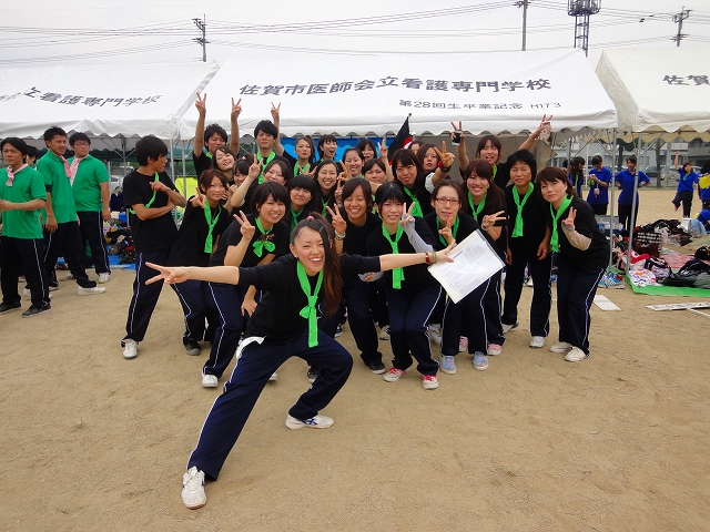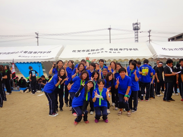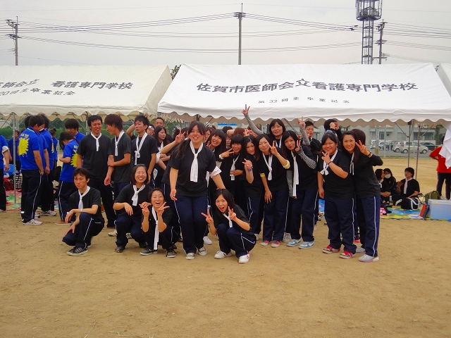 第38回学校祭(体育祭)が「オリンピックより熱いぜー・ワイルドだぜー佐医看」のスローガンのもと、9月22日(土)秋分の日に西神野運動広場で開催されました。早朝6時30分より学生会(立部辰徳会長)を中心にライン引き、テント設営など準備が進みました。さわやかな秋晴れの下、全11競技に学生、教職員総勢500名が参加し、クラス対抗リレーでは激しいバトルあり、パフォーマンスでは素晴らしい団結力を各クラスが見せ、楽しい1日を過ごしました。総合優勝は2年Bクラスが獲得しました。来年もまた新たな感動を期待しています!!
